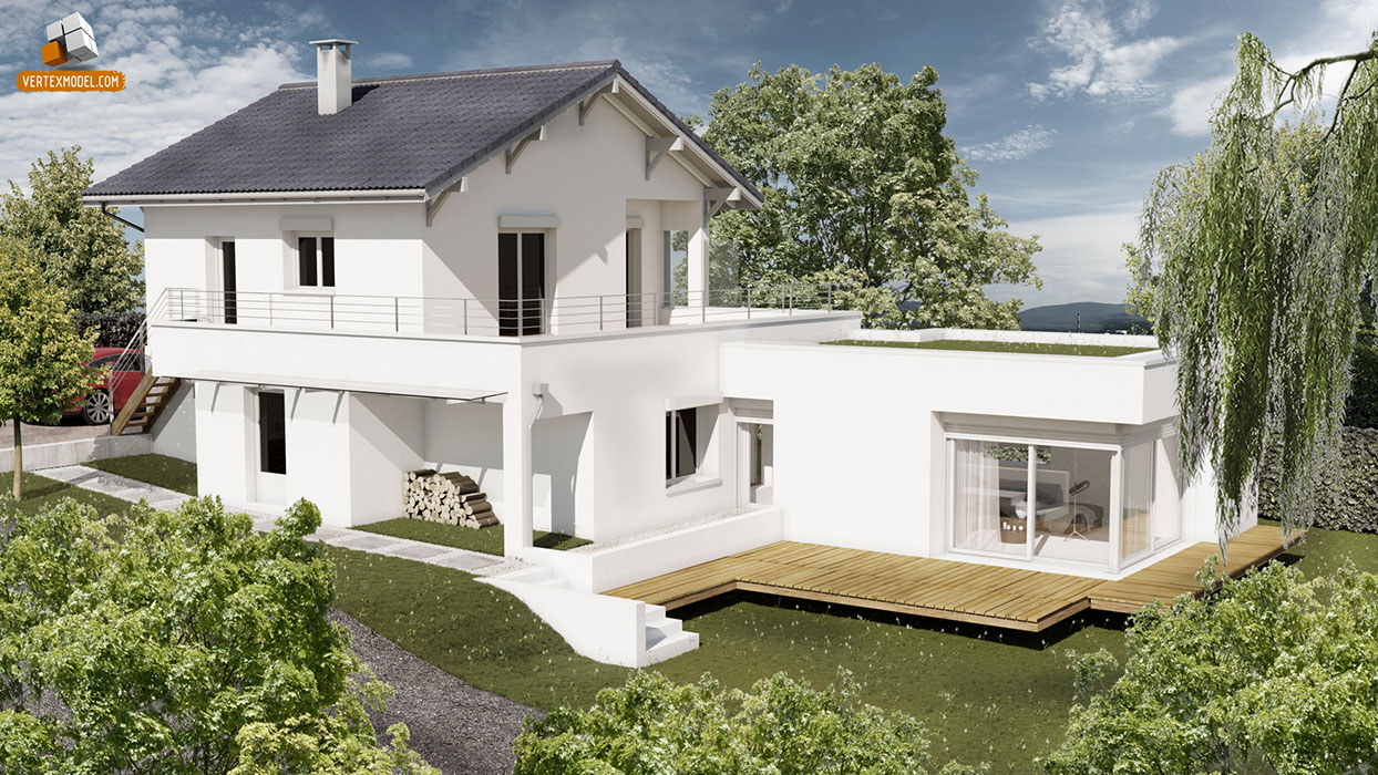 Images pour des projets de construction et rénovations de maisons individuelles pour permis de construire et vente.