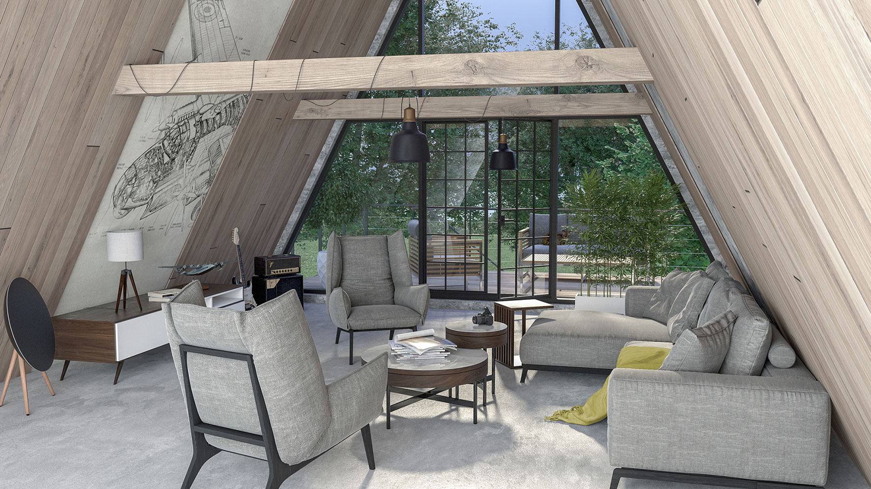 Salon aux murs pentus