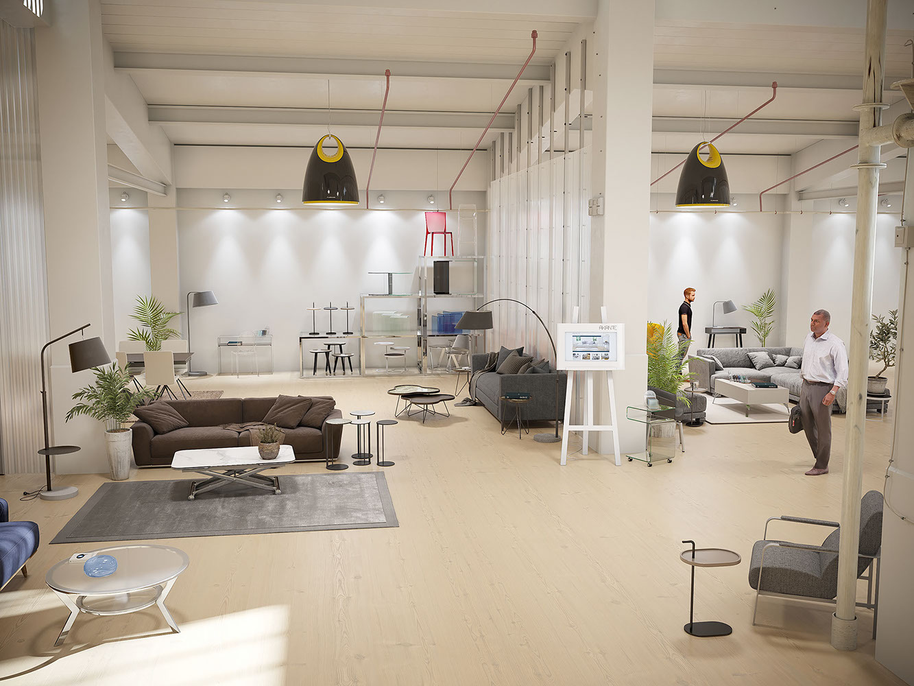 Image pour une proposition de réaménagement et décoration d'un magasin.